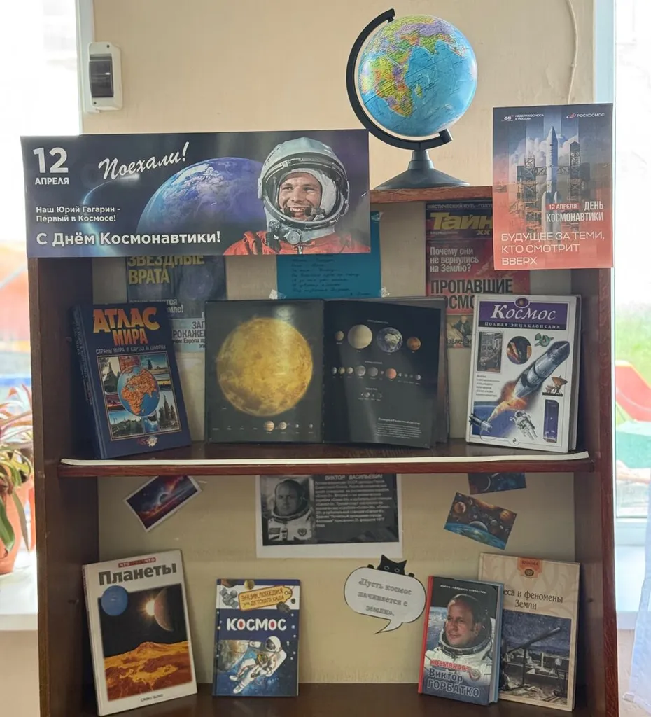 Также была подготовлена книжная выставка «Будущее за теми, кто смотрит вверх», которая познакомила читателей с разнообразной литературой, посвящённой истории космонавтики и развитию авиационной отрасли, это книги, энциклопедии, охватывающие различные аспекты космонавтики: от первых шагов человечества на пути к звёздам до современных технологий и достижений.